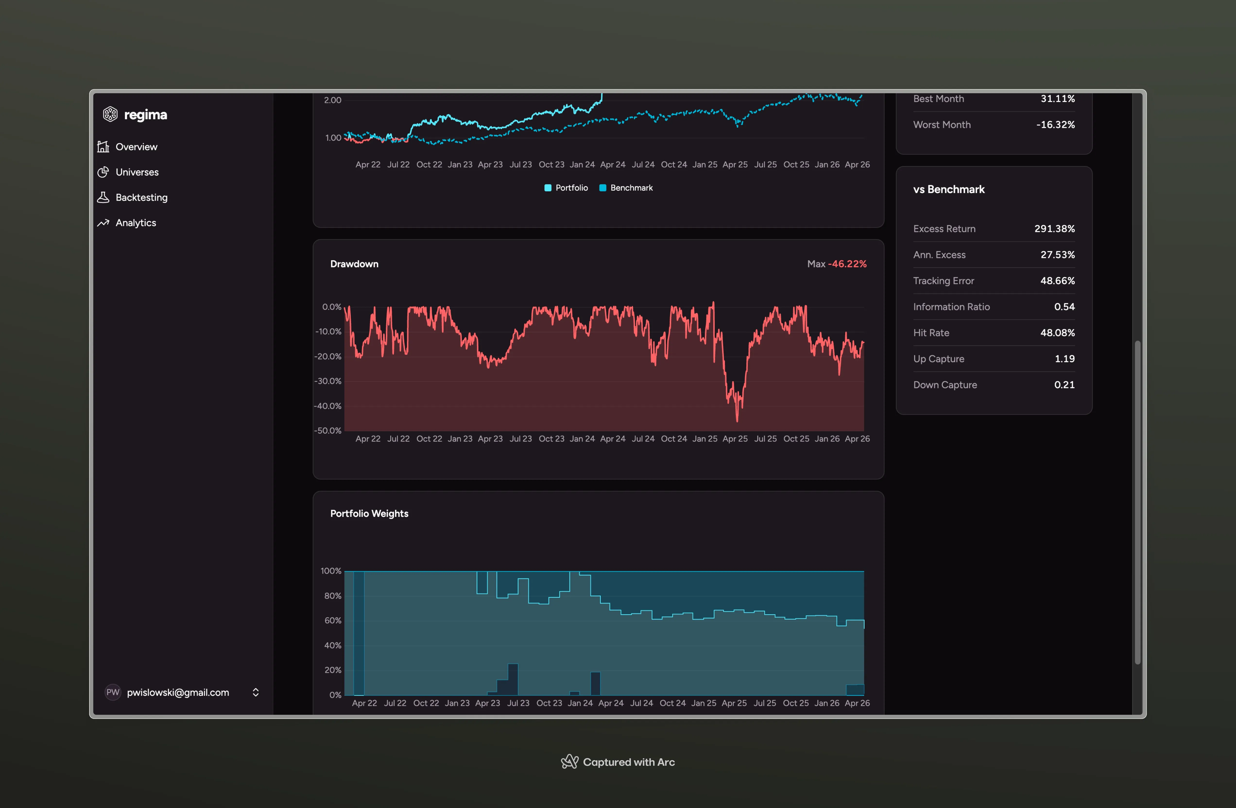 Personally, I need a tool that provides me with seamless analytics out-of-the-box without reconstructing the same analytics pipeline over and over again. There’s a lot of comfort in knowing that your portfolio is rebalanced with optimization in mind. That is why I’m building Regima.
