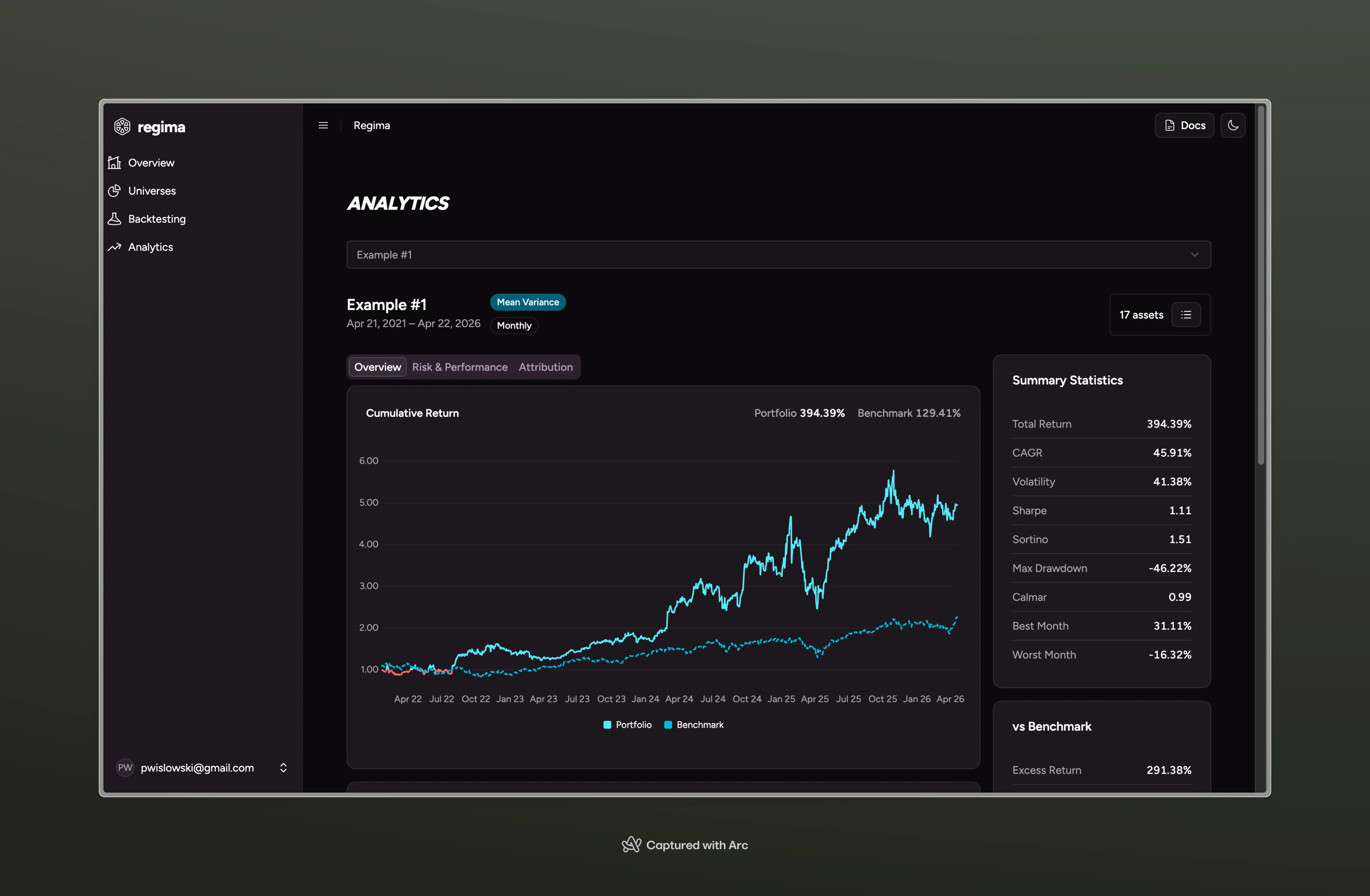 Personally, I need a tool that provides me with seamless analytics out-of-the-box without reconstructing the same analytics pipeline over and over again. There’s a lot of comfort in knowing that your portfolio is rebalanced with optimization in mind. That is why I’m building Regima.